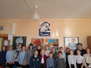 Да, и наша школа не забывает героев. И у нас есть кабинет В.Крапивина! Мы работаем в сотрудничестве и сотворчестве. Так, хозяйка кабинета Крапивина, Наводчикова Людмила Михайловна, радушно встретила гостей – ребят 6в класса. Встретились, чтобы поговорить о сегодняшнем имениннике. Людмила Михайловна рассказала о своей любви к писателю, его творчеству. К Крапивину и его героям «не зарастёт народная тропа», ибо «влажное биение слова» не заглушат века.