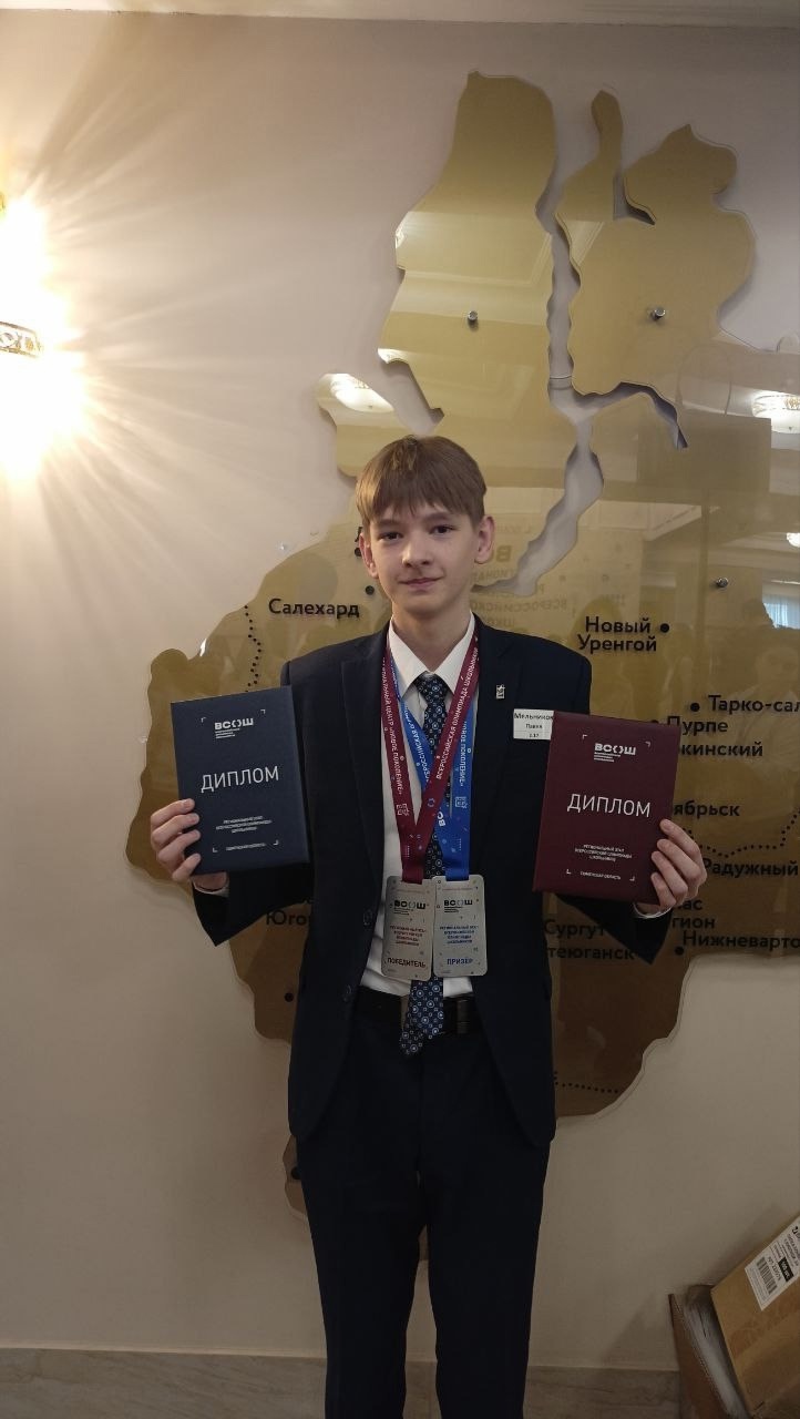 Мельников Павел ученик 9 а класса МАОУ ОСОШ № 1. С юных лет Павел отличался любознательностью, любил проводить опыты, ставить эксперименты, с увлечением наблюдал за природными явлениями, занимался фотографией, снимал увлекательное видео о природе. С первого класса ежегодно принимал участие в школьных и районных конференциях, олимпиадах, конкурсах. Изучение живых организмов постепенно переросло в желание стать врачом, с 7 класса мальчик с интересом стал изучать анатомию. В 8 классе принял участие в олимпиаде Менделеев по предметам химия и биология, за 9 класс, которую проводит Тюменский медицинский университет, стал призером областного уровня. Эта победа позволила ему стать участником базы данных одаренных детей Тюменской области. На протяжении 7 лет является победителем муниципального этапа конференции «Шаг в будущее» среди его работ: «Изучение свойств воздуха, «Создание модели воздушного шара по принципу братьев Монгольфье», «Изучение неньютоновской жидкости», «Создание генератора электрического тока», «Изучение влияния деятельности бобра на местные биогеоценозы», «Дисперсия света».