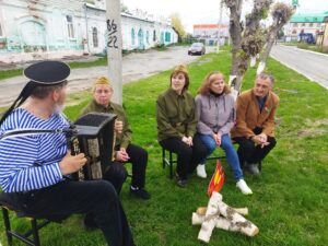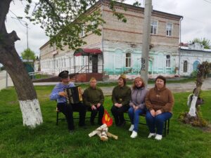 9 мая педагогами специальной школы (филиал МАОУ ОСОШ №1) была организована тематическая площадка «На солнечной поляночке» для жителей нашего села. Под звуки гармони исполнялись песни военных лет «Катюша», «Темная ночь», «Прощай, любимый город», «Казаки в Берлине», «Журавли» и другие.
