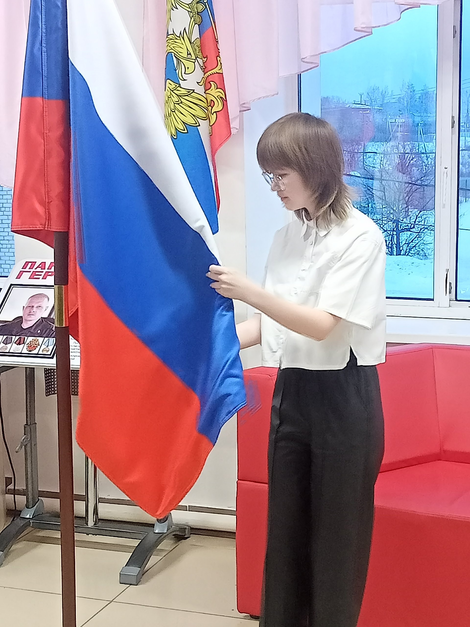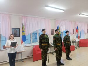 Кутузова: «Нет выше чести, как носить российский мундир!». Почетное право установить флаг РФ было предоставлено ученице 10б класса Сипатовой Александре, победительнице школьного, районного , участнице регионального этапа олимпиады по английскому языку Так же накануне праздника будущим защитникам Отечества были вручены зачетные квалификационные книжки и разрядные значки ( Пермяков М, Патлин В, Лик К. Толмачев А, Гвозденко А, Чистяков С)