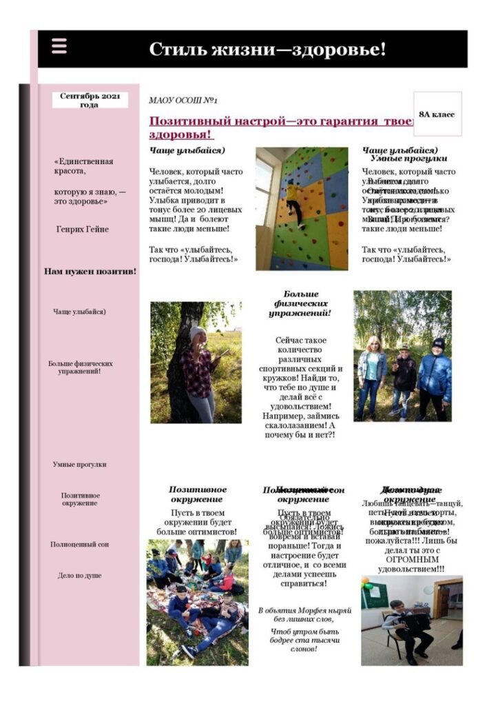 Учащиеся 8 «а» класса приняли участие в школьном этапе Всероссийского конкурса «Стиль жизни — здоровье! 2021»