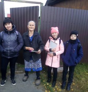 Волонтеры отряда «Молодая гвардия» поздравили людей «золотого» возраста с праздником, вручив им открытки сделанные руками учащихся начальных классов.