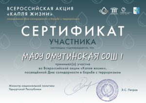 Учащиеся школы приняли участие во Всероссийской акции «Капля жизни💧».