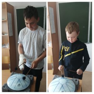 Ребята 5 и 7 класса на последнем уроке музыки увидели этот инструмент впервые.