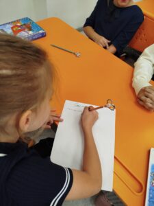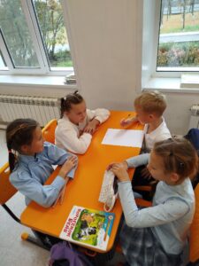 У ребят 2б класса прошло занятие по теме «Чередование творческих поручений» в треке «Орлёнок-лидер». В начале занятия ребята поздоровались друг с другом разными способами, а после поговорили о чередовании творческих поручений, разделились на группы и написали список дел, которыми их группа планирует заниматься на протяжении данного трека